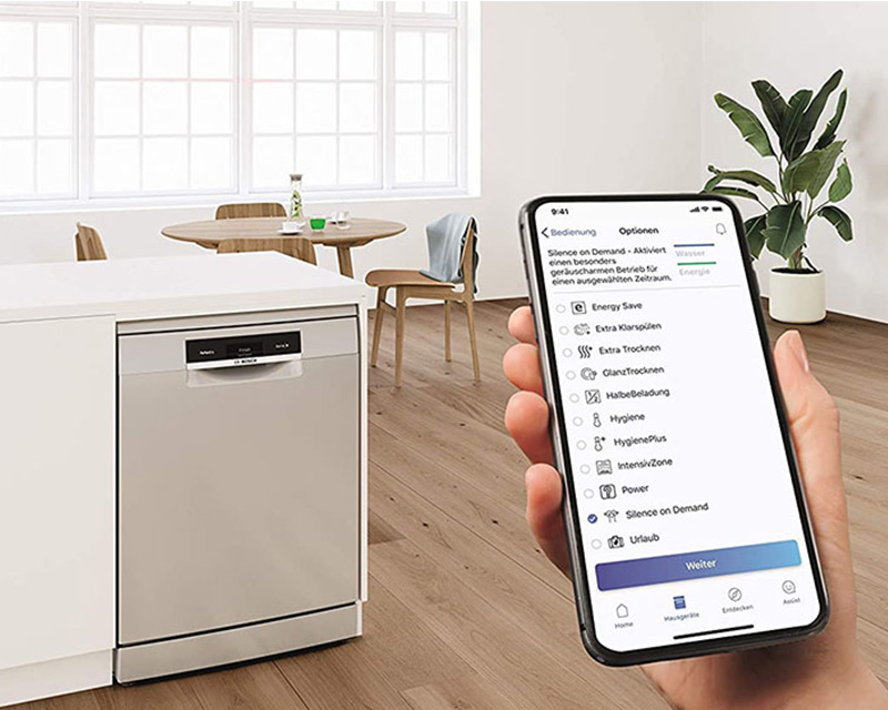Chỉ cần một chiếc điện thoại di động có cài đặt app Home Connect và kích hoạt qua WLAN. Thì bạn có thể dễ dàng điều khiển và theo dõi máy rửa bát từ xa. Đặc biệt, chức năng ra lệnh bằng giọng nói vô cùng tiện lợi, giúp bạn quản lý được thiết bị dễ dàng hơn.
