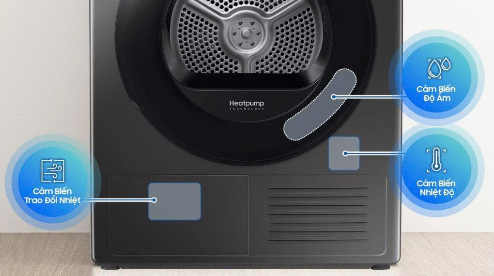 Máy sấy quần áo Samsung DV90T6240LB/SV được trang bị công nghệ Optimal Dry với ba cảm biến thông minh bao gồm cảm biến nhiệt độ, độ ẩm và trao đổi nhiệt. Các cảm biến này giúp máy tự động điều chỉnh nhiệt độ và thời gian sấy sao cho phù hợp nhất với từng loại quần áo, bảo vệ chất liệu và giữ màu sắc, phom dáng quần áo lâu dài. Điều này không chỉ tiết kiệm điện năng mà còn giúp quần áo được sấy khô đều và nhanh chóng.
