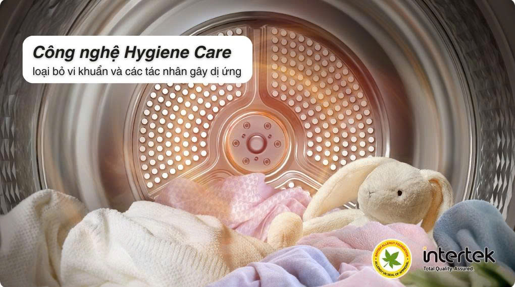 Chế độ Hygiene Care là tính năng diệt khuẩn rất hữu ích của máy sấy Samsung DV90T6240LB/SV. Chế độ này giúp loại bỏ đến 99,9% vi khuẩn và các chất gây dị ứng nhờ vào việc sử dụng nhiệt độ cao trong suốt quá trình sấy. Điều này đặc biệt quan trọng đối với những gia đình có trẻ nhỏ hoặc người có làn da nhạy cảm, giúp bảo vệ sức khỏe và giữ quần áo luôn sạch sẽ, không có vi khuẩn gây hại.