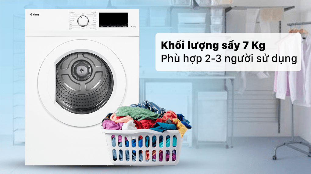 Máy sấy Galanz DV-70T5C đáp ứng đầy đủ nhu cầu sấy quần áo đến 7 kg, phù hợp cho những gia đình có thành viên từ 2 - 3 người nhằm để xử lý nhiều quần áo mà không tiêu thụ nhiều điện năng và không mất thời gian sấy nhiều lần. Ngoài ra còn phù hợp với các căn hộ kinh doanh dịch vụ giặt ủi, nhà nghỉ, khách sạn...
