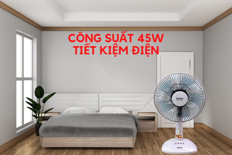 Quạt bàn Benny BFT-30 sử dụng công suất 45W đi kèm điện áp 220/50Hz, đạt tiêu chuẩn năng lượng 5 sao, giúp làm mát hiệu quả khi sử dụng, bên cạnh đó công suất 45w và nguồn điện 220-240V-50Hz sẽ giúp bạn tiết kiệm điện năng một cách tố ưu.