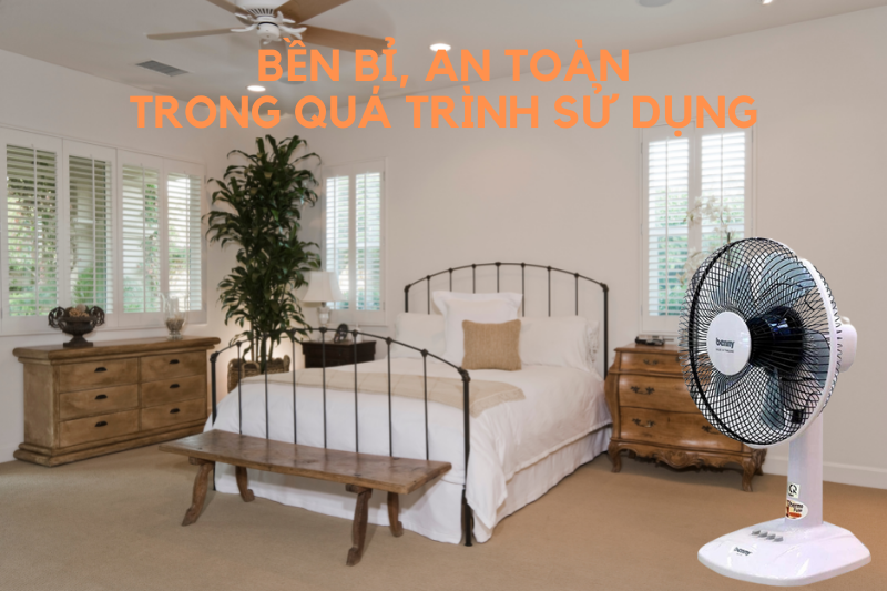 Bên cạnh khả năng làm mát nhanh chóng và hiệu quả, quạt bàn Benny BFT-30 còn giữ được sự bền bỉ và an toàn ngay cả khi hoạt động liên tục trong khoảng thời gian dài. Motor của sản phẩm được trang bị bảo vệ quá nhiệt có thể tự động ngắt khi quá tải, đảm bảo an toàn tuyệt đối cho động cơ và bảo vệ người dùng khỏi nguy hiểm nếu có các trường hợp cháy nổ xảy ra.