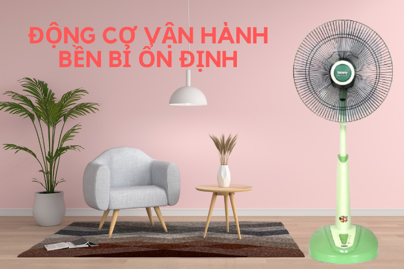 Động cơ mạnh mẽ tạo ra làn gió trải rộng, tản gió nhanh, làm mát không gian phòng hiệu quả. Chân đế có kích thước rộng giúp đứng vững chắc trên bề mặt phẳng. 3 tốc độ gió được thiết kế dưới chân đế quạt, bấm dễ dàng giúp bạn có thể lựa chọn gió nhẹ, trung bình hoặc cao tùy theo nhu cầu sử dụng.