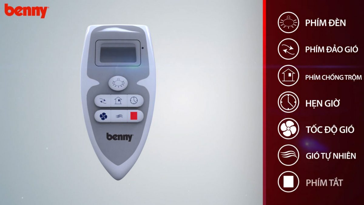 Quạt trần Benny BF-C43V có điều khiển từ xa giúp bạn có thể ngồi một chỗ và sử dụng thật tiện lợi mà không cần di chuyển, đi lại nhiều, Quạt cung cấp gió mạnh mẽ, vùng phủ gió rộng rãi, chế độ hẹn giờ thông minh giúp bạn ứng dụng để tắt quạt dễ dàng đồng thời tiết kiệm điện hiệu quả.