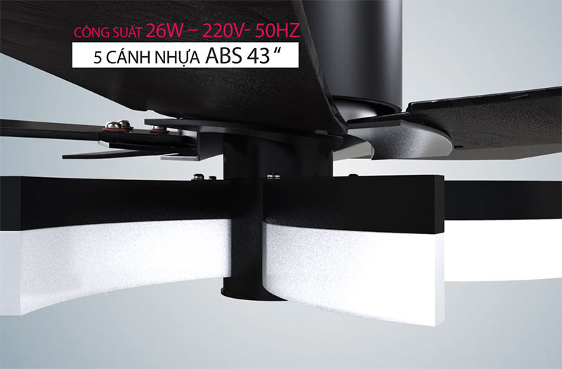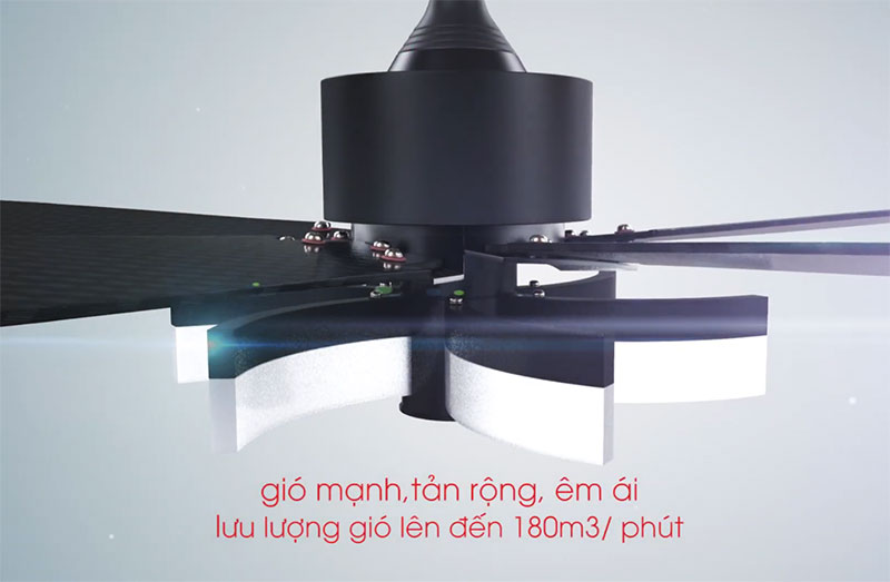 Quạt trần Benny Romantico BFC43V được thiết kế với 5 cánh quạt đảo gió tiên tiến, với thiết kế mới lạ có thể nói đây là sản phẩm sở hữu 5 cánh quạt độc đáo nhất trên thị trường. Kết hợp với công suất nhỏ chỉ 26W, thiết bị này không những mang lại làn gió mát lành mà còn vận hành rất êm ái và ít tạo ra tiếng ồn, phù hợp với mọi gia đình, đặc biệt là những gia đình có người già, trẻ nhỏ.