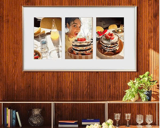 Tivi 75 inch Samsung The Frame QA75LS03FAKXXV sở hữu thiết kế khung tranh hiện đại, được lấy cảm hứng từ sự tối giản và hiện đại, tạo điểm nhấn đầy nghệ thuật cho không gian sử dụng. Tivi được thiết kế mỏng nhẹ tinh tế, có thể treo sát tường để tạo thành một bức họa đỉnh cao.
