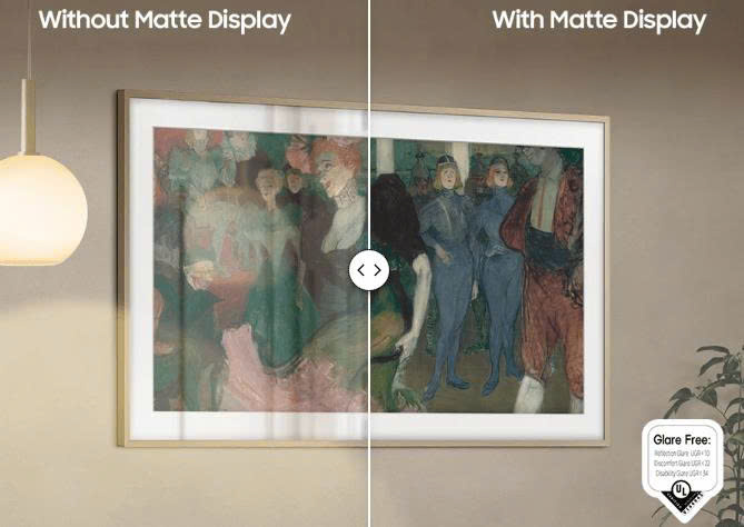 Ngoài ra, tivi The Frame này còn được trang bị tấm nền chống phản sáng giúp hiển thị hình ảnh rõ nét cho bạn trải nghiệm nghệ thuật chi tiết trọn vẹn, tránh cảm giác mệt mỏi, chói lóa vì ánh sáng, gây mất tập trung từ màn hình.