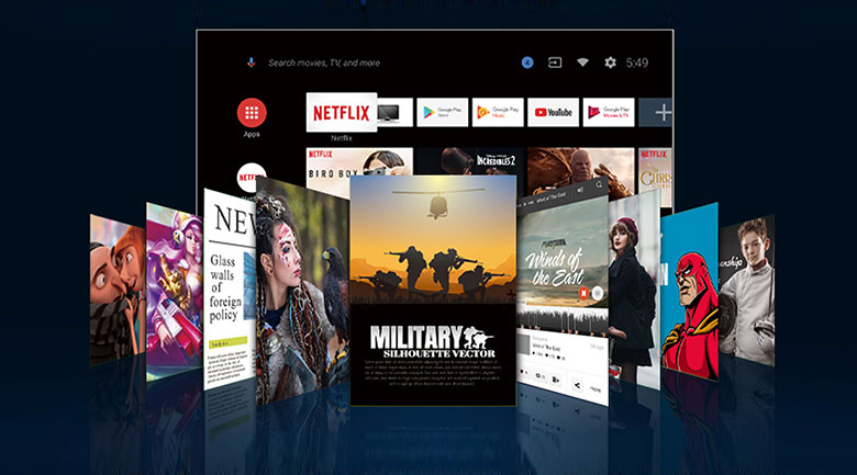 Dễ dàng để tìm kiếm các chương trình yêu thích cho từng thành viên trong gia đình từ hàng loạt các ứng dụng phổ biến trong thư viện hơn 5000 ứng dụng của hệ điều hành như YouTube, Netflix, Primevideo, Spotify, FPT Play, NCT,... và bạn có thể tải thêm ứng dụng trên Google Play Store.