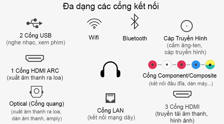 Remote thông minh tích hợp micro cho phép bạn tiện tìm kiếm bằng giọng nói hỗ trợ tiếng Việt 3 miền mà không cần thao tác nhấn nút thủ công trên remote, nhanh chóng và đơn giản hơn rất nhiều.