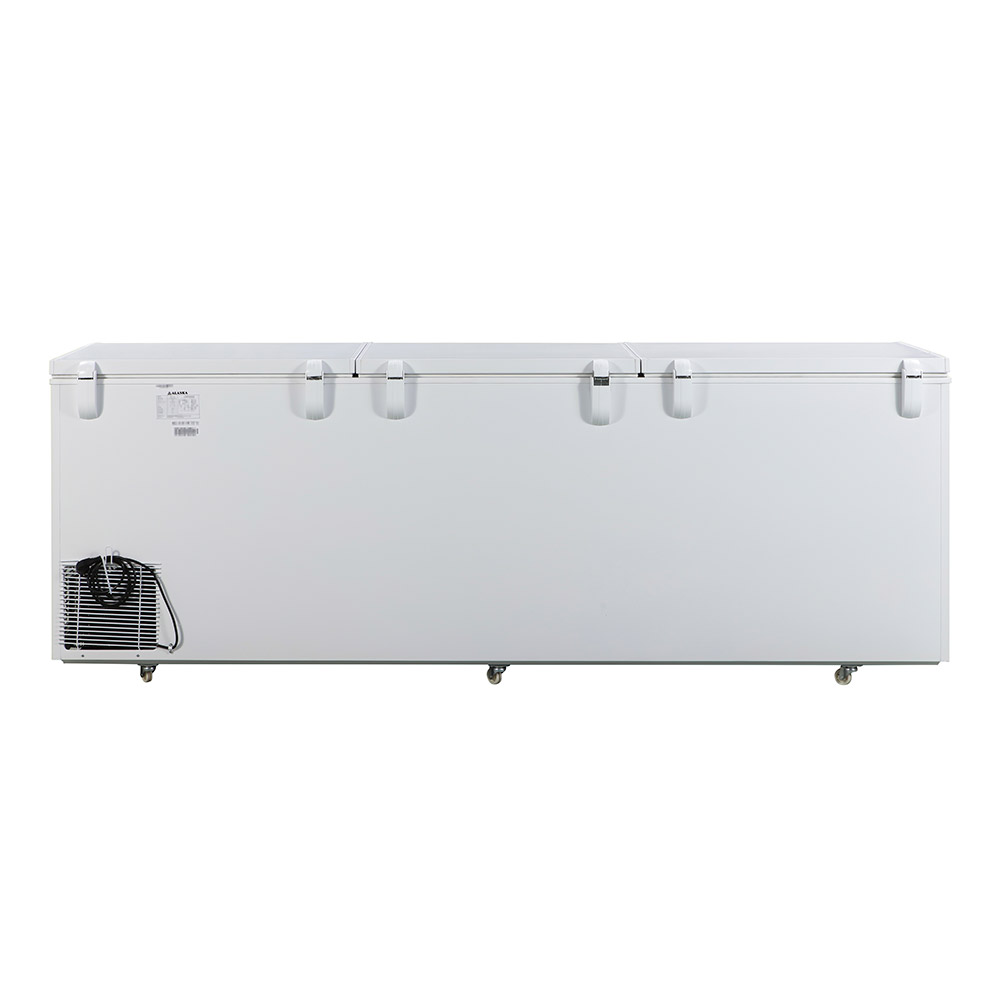 Tủ đông Alaska 3 cửa Inverter 1100 Lít HB-1100CI sở hữu tông màu trắng vô cùng tinh tế và thanh lịch. Tủ đông Alaska HB-1100CI là dòng tủ đông 1 ngăn 3 cánh nắp mở vali tiện lợi. Với dung tích lên đến 1100 lít giúp bảo quản số lượng lớn thực phẩm, thích hợp được sử dụng để bảo quản thực phẩm, đồ uống trong nhà hàng, quán ăn, cửa hàng tiện lợi, siêu thị,...