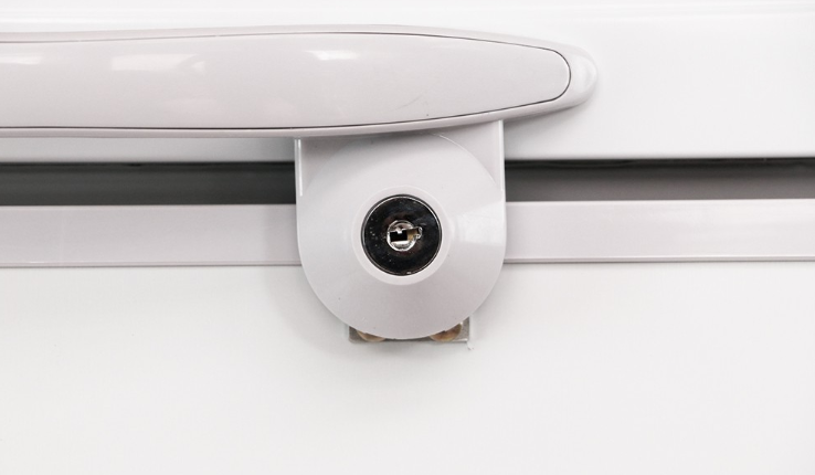 Tủ Đông ALASKA BCD-5568C có tích hợp khóa chắc chắn, đảm bảo an toàn khi nhà có trẻ em hoặc khi không muốn ai mở của tủ ra.