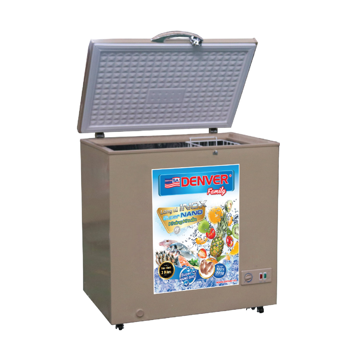 Lớp thành tủ dày giúp giữ nhiệt hiệu quả. Tủ đông được trang bị lòng INOX Super Nano kháng khuẩn là dòng sản phẩm sử dụng chất liệu Inox cao cấp, được phủ lớp Nano AG+ ngăn ngừa vi khuẩn bảo vệ sức khỏe. Chất liệu INOX cao cấp đã được kiểm chứng với độ bền và khả năng dẫn nhiệt cao hơn nhiều lần so với lòng chống dính thông thường. Với khoang lạnh INOX, thực phẩm được bảo quản tốt hơn, nhiệt độ lạnh sâu hơn và độ bền tủ tốt hơn rất nhiều.