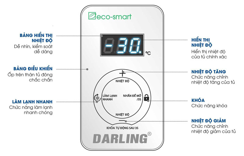 Công nghệ Smart Control có bảng điều khiển cảm ứng và đồng hồ điện tử , giúp bạn chọn nhiệt độ bảo quản chính xác nhất cho thực phẩm của bạn.
