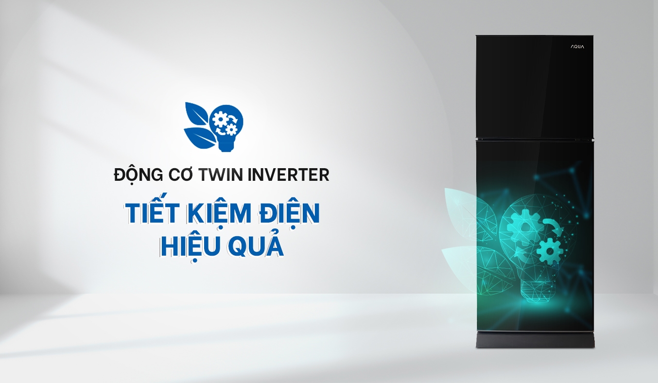 Tủ lạnh Aqua Inverter 186L được trang bị động cơ hiện đại Twin Inverter giúp tiết kiệm điện năng hiệu quả. Không chỉ vậy, công nghệ Inverter còn giúp tủ lạnh hoạt động êm ái và sử dụng bền bỉ. Sở hữu tủ lạnh Inverter này, các bà nội trợ sẽ không còn quá lo lắng bởi hóa đơn tiền điện mỗi tháng khi sử dụng tủ.