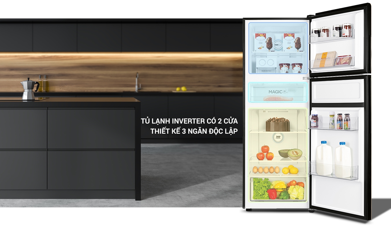 Tủ lạnh AQUA Inverter 312 lít AQR-T359MA(GB) có màu sắc trang nhã, thiết kế mặt gương tô điểm cho không gian bếp nhà bạn thêm sang trọng. Tủ lạnh Inverter 2 cửa thiết kế 3 ngăn độc lập hạn chế tối đa sự lẫn mùi thức ăn giữa các ngăn, giúp bảo quản thực phẩm được tươi ngon.