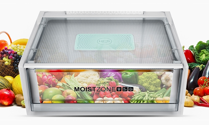 Tủ lạnh AQUA trang bị thêm màng giữ ẩm HCS giúp ngăn Moist Zone có thể bảo quản rau củ luôn tươi ngon, mọng nước, sẵn sàng cho những bữa ăn đầy đủ dưỡng chất Giờ đây bạn có thể bảo quản thực phẩm được tươi lâu hơn, mà không còn lo lằng.