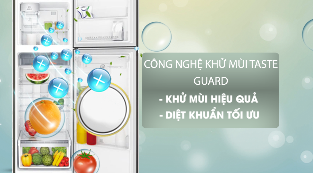 Với công nghệ khử mùi Taste Guard, bên trong tủ sẽ được kháng khuẩn và hạn chế mùi hôi phát tán bởi thực phẩm trong quá trình lưu trữ. Không khí của tủ sẽ thoáng mát và sạch sẽ, giúp kéo dài thời gian bảo quản thịt cá và hải sản.