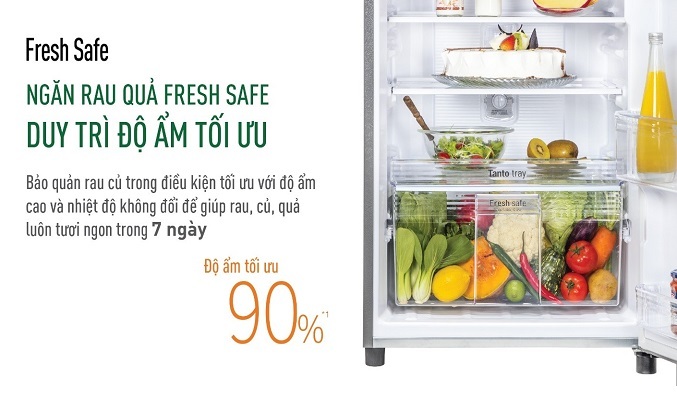 Tủ lạnh Panasonic Inverter trang bị Ngăn rau củ Fresh Safe có khả năng duy trì độ ẩm và nhiệt độ tối ưu giúp rau quả tươi ngon, giữ được nhiều chất dinh dưỡng, hạn chế tình trạng khô héo.