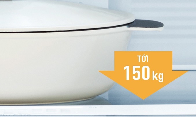 Tủ lạnh Panasonic Inverter NR-TV261APSV thiết kế các khay kính chịu lực an toàn, bền bỉ với trọng tải lên đến 150kg, giúp bạn yên tâm trữ các thực phẩm có khối lượng lớn.