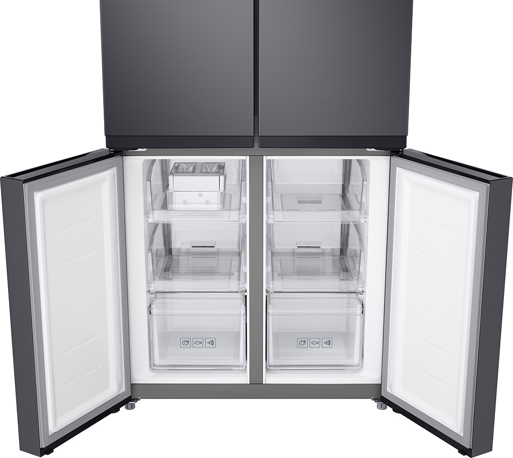 Tủ lạnh 4 cánh mở độc lập kiểu cửa Pháp cực kỳ tiện lợi với ngăn mát và ngăn đá rộng rãi, dễ dàng lưu trữ những thực phẩm có kích thước bề ngang lớn. Ngăn mát nằm phía trên giúp bạn dễ dàng quan sát và lấy thực phẩm thường dùng mà không cần cúi xuống tìm kiếm nhiều. Tổng dung tích lên đến 488 lít đáp ứng nhu cầu lưu trữ thực phẩm cho gia đình 4-6 thành viên hoặc gia đình ít người nhưng cần bảo quản lượng lớn thức ăn vì không có nhiều thời gian đi chợ.