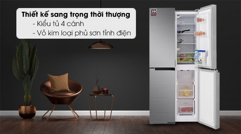Chiếc tủ lạnh 4 cửa này thiết kế theo phong cách của Pháp mang lại không gian chứa thực phẩm rộng rãi. Tủ lạnh Sharp dung tích lớn nhưng không mang lại cảm giác cồng kềnh, trái lại nó còn cực kỳ sang trọng thời thượng nhờ vào chất liệu cửa tủ là kim loại phủ sơn tĩnh điện cùng với thiết kế của dòng tủ lạnh mặt gương sang trọng.