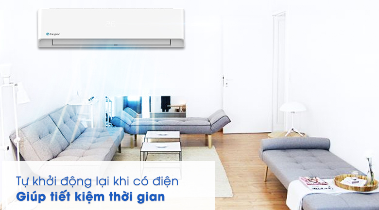 Khi cúp điện đột ngột, máy lạnh Casper này sẽ tự động ghi nhớ các cài đặt gần nhất như nhiệt độ, hướng gió,... và khi có điện lại, máy sẽ tự thiết lập những ghi nhớ độ mà không cần sự can thiệp từ bạn.