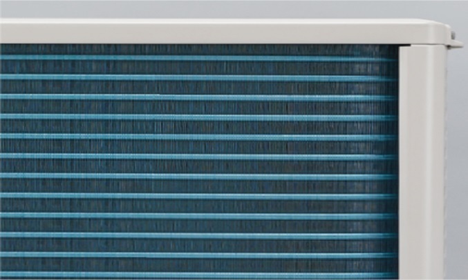 Hệ thống trao đổi nhiệt dàn nóng của điều hòa được phủ một lớp Blue fin đặc biệt có khả năng kháng ăn mòn hơi muối biển trong không khí giúp máy bền bỉ trong môi trường khắc nghiệt, tăng tuổi thọ máy.