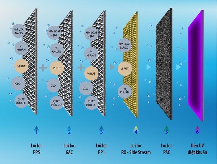 Lõi số 4 - RO side Stream giúp loại bỏ vi khuẩn, vi rút, kim loại nặng…