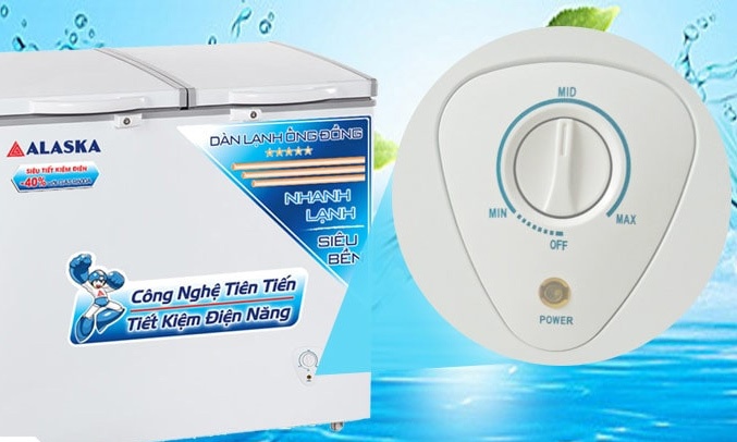 Tủ đông Alaska BCD-3568C có nút điều chỉnh nhiệt độ bên ngoài dễ dàng điều chỉnh nhiệt độ phù hợp với lượng thực phẩm được bảo quản.
